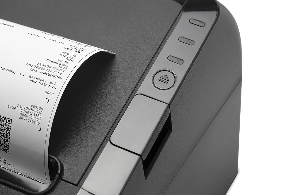 Заменить чековую ленту легко — одно нажатие кнопки и подпружиненная крышка откроется полностью, без риска травмы пальцев кассира. АТОЛ 27Ф удобен для кассовой зоны самообслуживания за счет рулонной подачи чековой ленты.